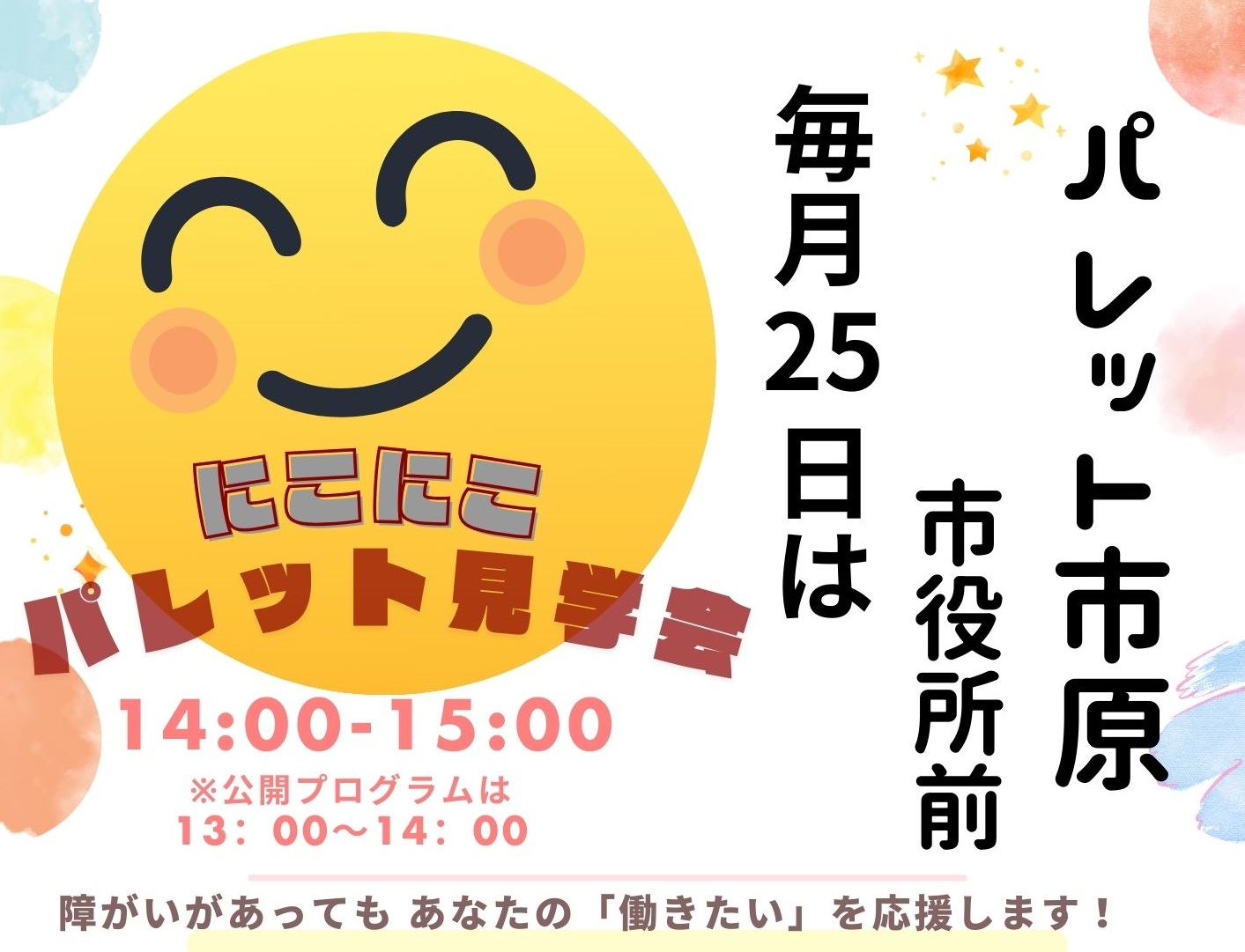 実際に来所して頂き、パレット稲毛海岸・銚子・市原市役所前の雰囲気を見てもらったり、お話を伺わせて頂きます。