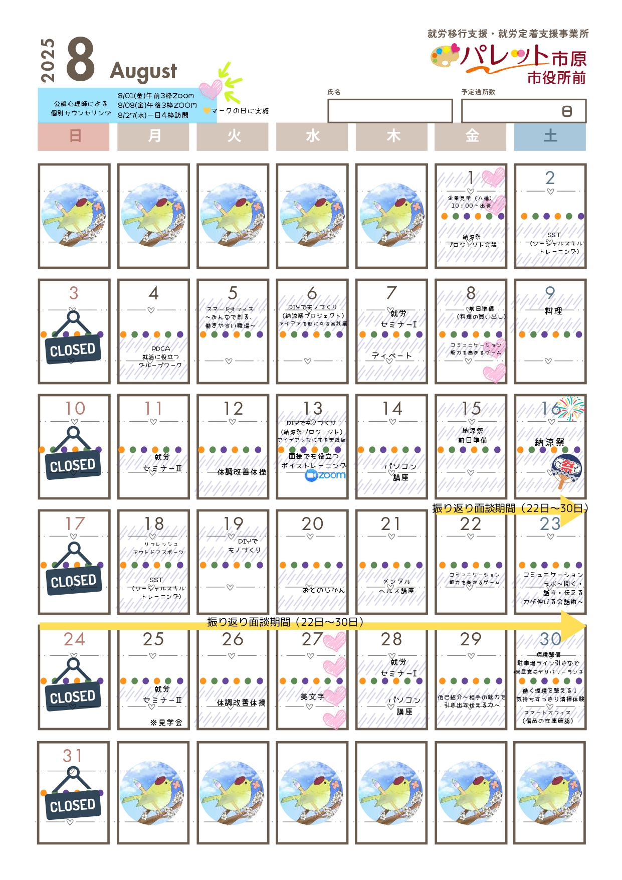 実際に来所して頂き、パレット稲毛海岸・銚子・市原市役所前の雰囲気を見てもらったり、お話を伺わせて頂きます。