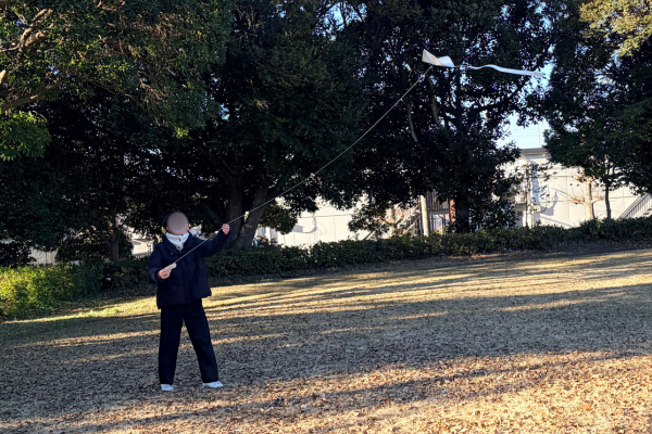 完成した凧を持って公園へ移動し、いよいよ凧あげ。風を感じながら走ったり、空高く揚がる凧を見上げたりと、自然と笑顔があふれる時間となりました。
