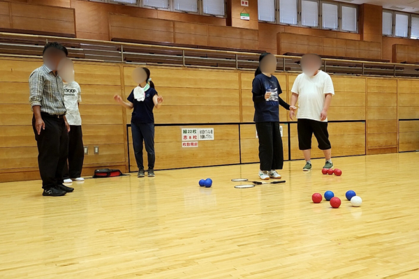 ZA武道館でバドミントン・ボッチャ・卓球などを楽しみます。無理のない運動を通して、気分転換をしたり交流を深めたりするプログラムです。