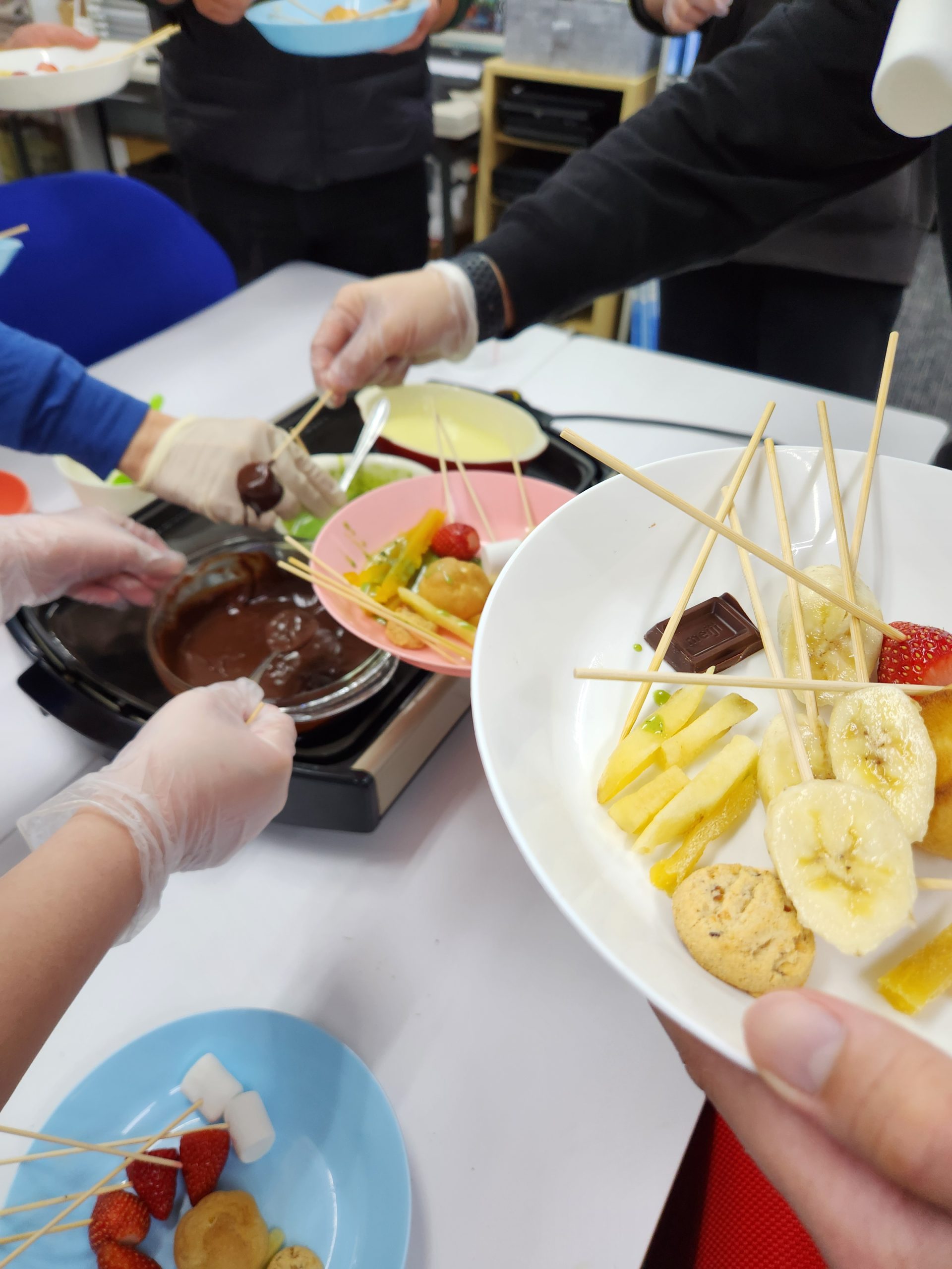 さて、事業所では、3/15にブラックホワイトデーのプログラムでみんなでチョコフォンデュを作りました!![]()