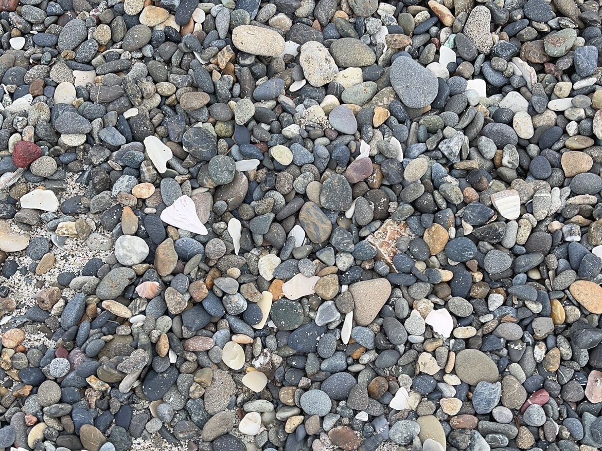 貝殻が思いのほか少なく小石多め。その中でも自分にとっての宝石を探しました。