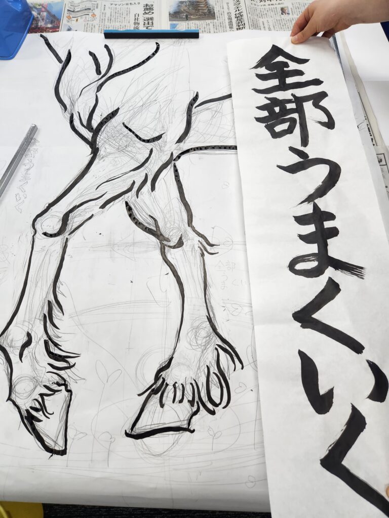 さて、パレットでは、来年も良いお年になることを願って、【アートな時間】のプログラムを活用し、年賀状の制作をしました。みんなの想いが入った、素敵な年賀状ができました。作成のプロセスを少しだけ(特別ですよ)